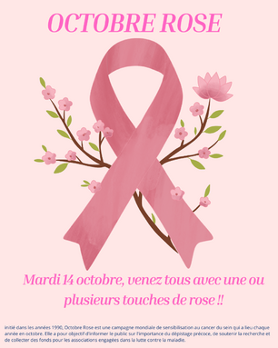 Mardi 14 octobre, venez tous avec une ou plusieurs touches de rose au collège !!!